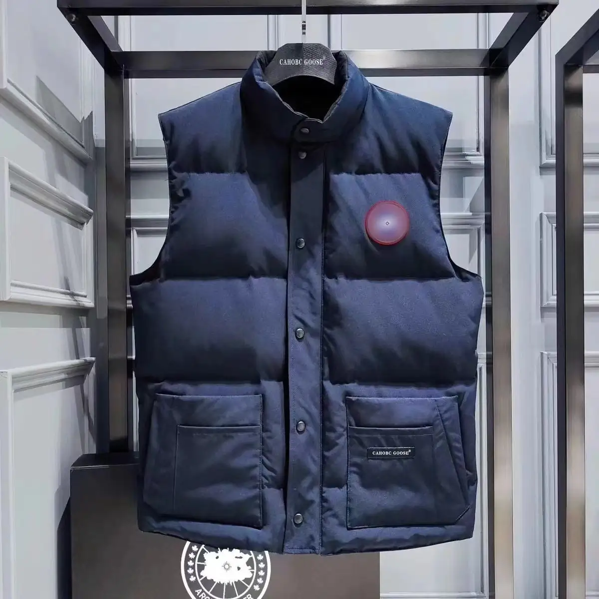 Canada Goose navy blue mid-length jacket, suitable for both men and women