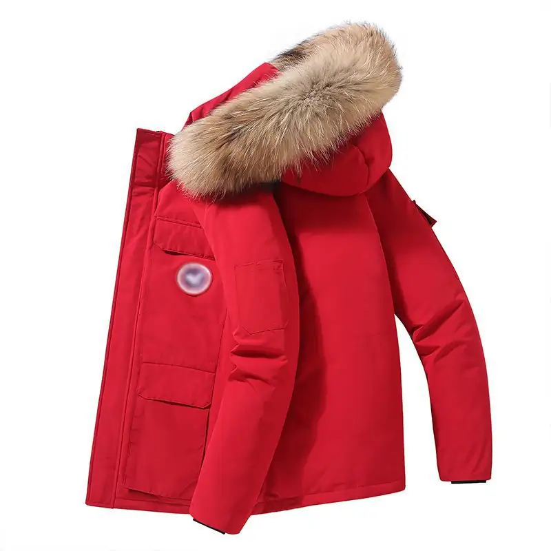This striking red parka is equipped with 550 Fill Power white duck down, offering efficient thermal regulation for light-cold conditions down to -5°C. The corduroy-textured polypropylene shell provides a unique hand-feel and fundamental wind resistance, while the authentic raccoon fur hood adds both classic aesthetics and practical facial protection against wind chill.